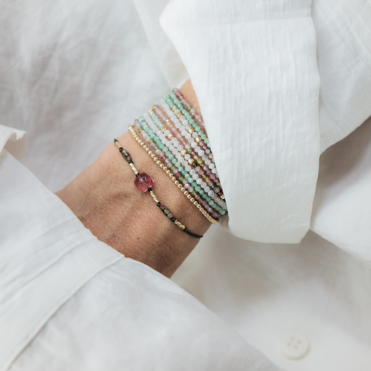 Your 100% colourful darlings! A rainbow of colours, a fine line and a beautiful 14k gold filled finish make this a perfect ally for a personalised mix and match.