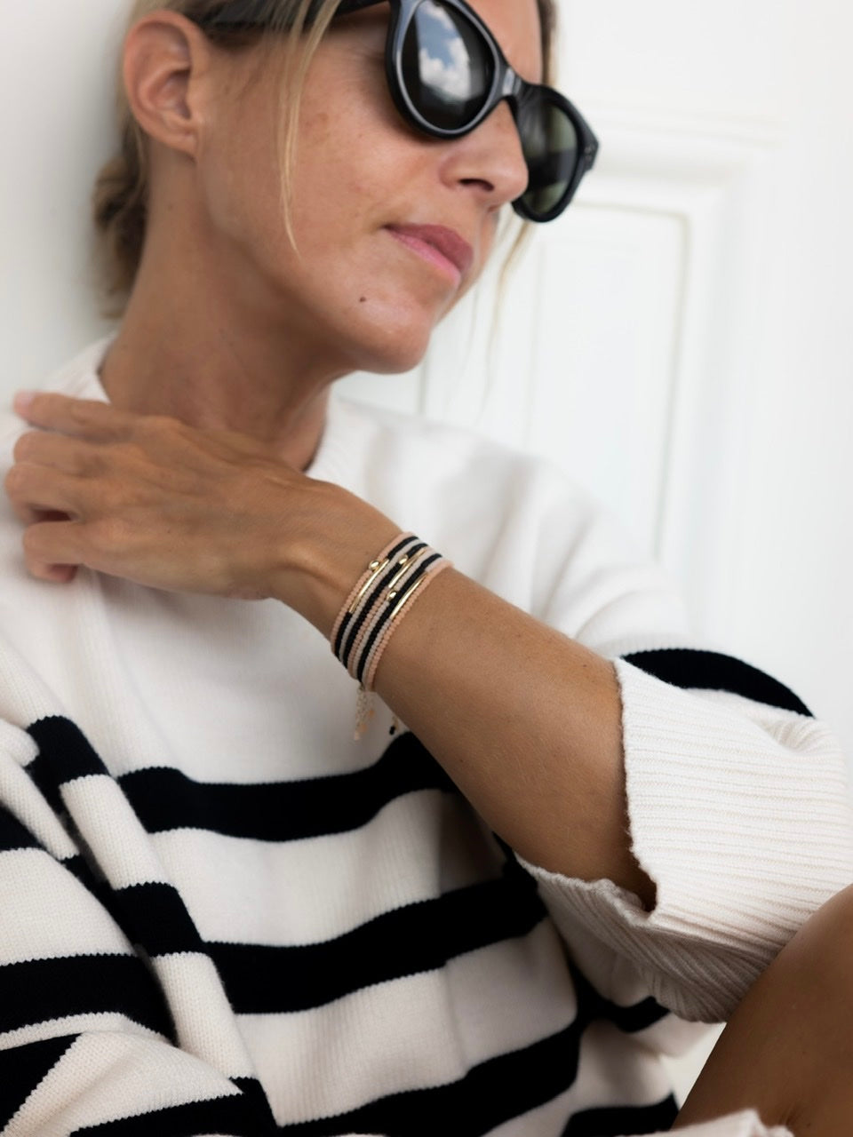 A mix & match of 9 bracelets MILAN, LONDON & PARIS. Colours: BLACK, SAND & PEACH.