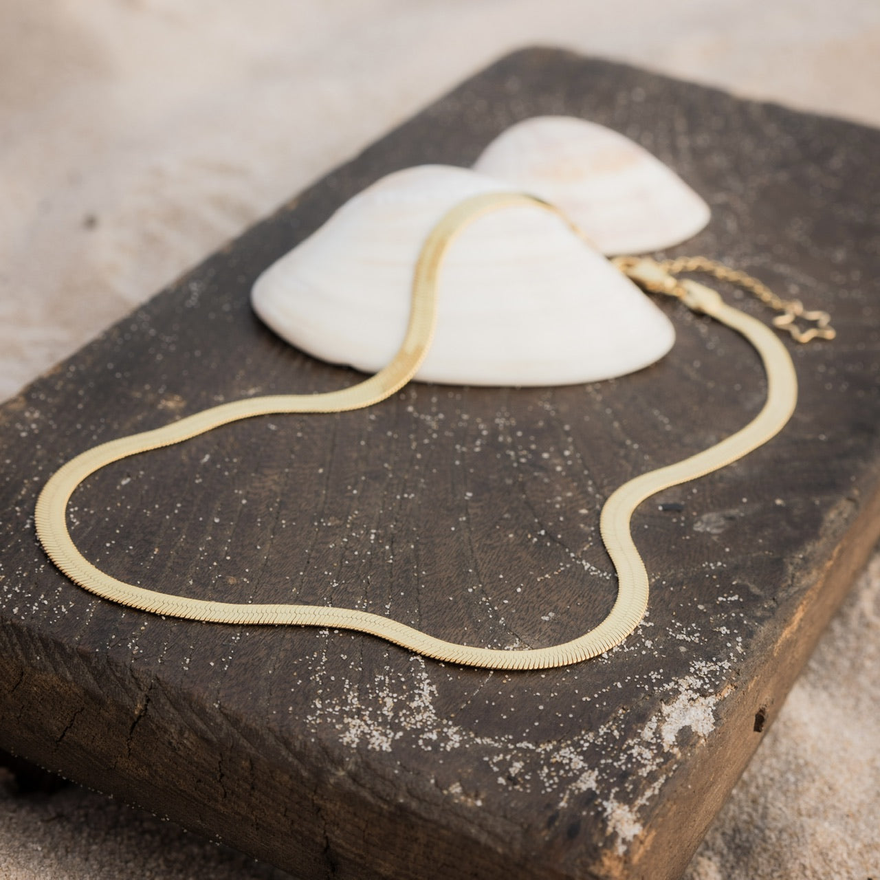 Un Must-have. La chaîne serpent plate est absolument parfaite pour habiller votre décolleté. Ce must-have vient se griffer à tous vos looks et qu’importe la saison.